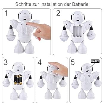 Völliger Müll. Erstens braucht er drei Batterien und nicht wie angegeben zwei. Zweitens hat der Roboter nur eine Bedienungsmöglichkeit: An oder Aus.Er ist nicht wie beschrieben "intelligent" , sondern bewegt sich nicht synchron zu einer "Musik" , die einem nach einer Minute total verstört. Es werden drei chinesische Sätze zu einer sich schnell wiederholenden Melodie in einer nicht einstellbaren Lautstärke ins Ohr trompetet. Dieser Roboter ist der Alptraum aller Eltern und bestenfalls als Qualwerkzeug für Geheimdienste geeignet. Finger weg!!!