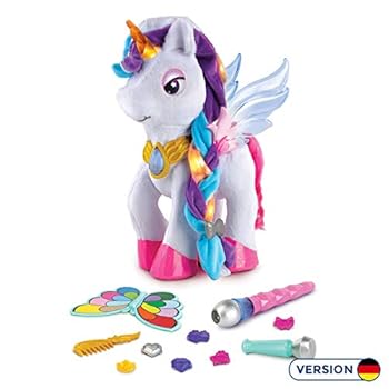 Also für Vtech hab ich mir mehr erhofft und vor allem von dem Preis. Das einhorn ist schön anzuschauen und das mit dem farbpinsel auch nicht schlecht. Aber meine jüngere Tochter tut sich recht schwer mit dem Pinsel weil der Pinsel genau auf ein Sensor hin gedrückt werden muss um diesen farbwechsel auszulösen. Und man kann nur die Farben nehmen was auf dieser farbpalette sind. Im fernsehe bringen sie glaub: Tippe Farben von deiner Umgebung an und übertrage es auf dein Pferd. Also das geht nicht.Mit dem singen ist es auch so ne Sache. Das Pferd singt nur wenn das Mikro direkt vorne am Mund hingehalten wird. Wenn man mit dem Mikro weg geht weil man mitsingen will singt das Pferd nicht mehr.Im Grossen und ganzen schön anzuschauen aber für den Preis leider zu teuer. Und ich musste zwei kaufen🙈