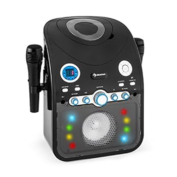 AUNA StarMaker Karaokemaschine Karaoke Player Anlage (Multicolor LED-Lichteffekt, Bluetooth, CD-Player, 2 x Mikrofon, USB-Port, Video-Ausgang) schwarz Das perfekte Geschenk für kinder.