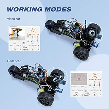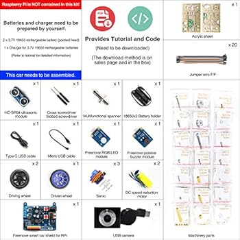 Freenove Three-Wheeled Smart Car Kit for Raspberry Pi 4 B 3 B+, Robot Project, Tutorial and Code, Android APP, Video Camera Wi-Fi Wireless RC Servo Ultrasonic Das perfekte Geschenk für kinder.