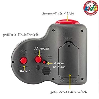 stabile Ausführung, man hört wirklich kein Ticken,der Alarm fängt mit einer vernünftigen Lautstärke an und steigert sich dann ein bißchen,super Wecker für Jungen,empfehle ihn uneingeschränkt weiter,