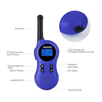 Miavogo 2 x Walkie Talkie Set für Kinder Funkgerät 8 Kanäle PMR 3km Reichweite mit LCD-Display, Dunkelblau Das perfekte Geschenk für kinder.