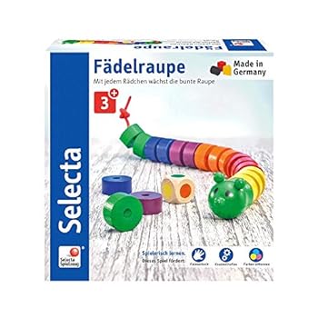 Selecta 63005 Fädelraupe, Würfel- und Fädelspiel mehrfarbig Das perfekte Geschenk für kinder.