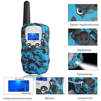 Walkie Talkie Kinder PMR FunkgerĂ€te 3KM Reichweite 8 KanĂ€le 10 Klingeltöne Walki Talki mit Taschenlampe Vox LCD-Display Spielzeug ab 3jahre Junge Geschenk fĂŒr Kinder (T388 Tarnung Dunkelblau) Das perfekte Geschenk fĂŒr kinder.