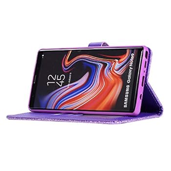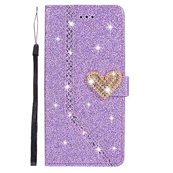 Homikon PU Leder Hülle Schön Bling Glänzend Glitzer Diamant Liebe Schutzhülle Brieftasche Lederhülle Bookstyle Handyhülle Magnetverschluss Tasche Kompatibel mit Samsung Galaxy A7 2018 - Lila Das perfekte Geschenk für kinder.