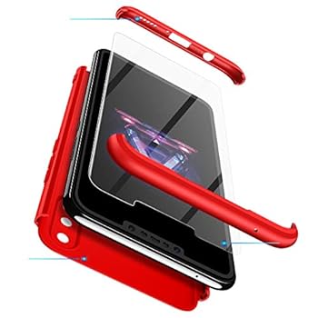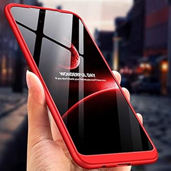 Karomenic 360 Grad Hülle + Panzerglas kompatibel mit Samsung Galaxy A40 Hart PC Schutzhülle 3 in 1 Full Body Rundumschutz Stoßfest Ganzkörper Bumper Handyhülle Hardcase Cover,Rot Das perfekte Geschenk für kinder.