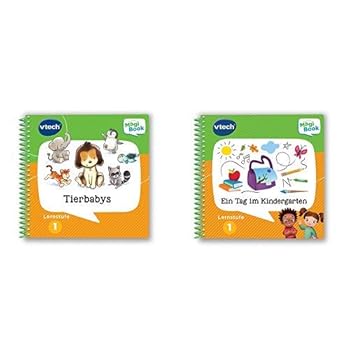 Vtech 80-480004 Lernstufe 1-Tierbabys MagiBook Lernbücher, Mehrfarbig & 80-481204 Lernstufe 1 - EIN Tag im Kindergarten MagiBook Lernbücher, Mehrfarbig Das perfekte Geschenk für kinder.